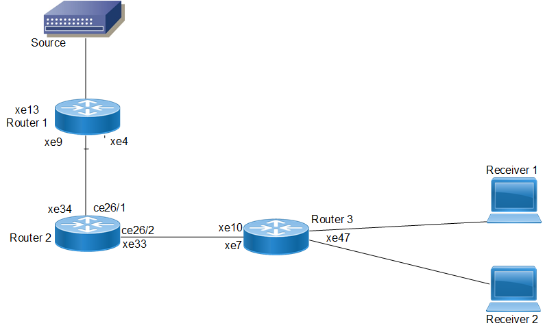 In this network topology, the source address is 172.31.1.52 and the group address is set to 224.0.1.3.