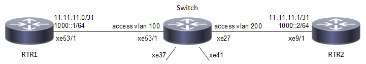 (config)#ipv6 route vrf vrf10 2000::/64 1000::2 xe53/1