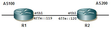 (config-router)#neighbor fe80::1 remote-as 200 | Define the BGP neighbor (R1), and establish a TCP session by specifying the link-local address R1(fe80::1) and the AS number(200)of neighbor R1. |