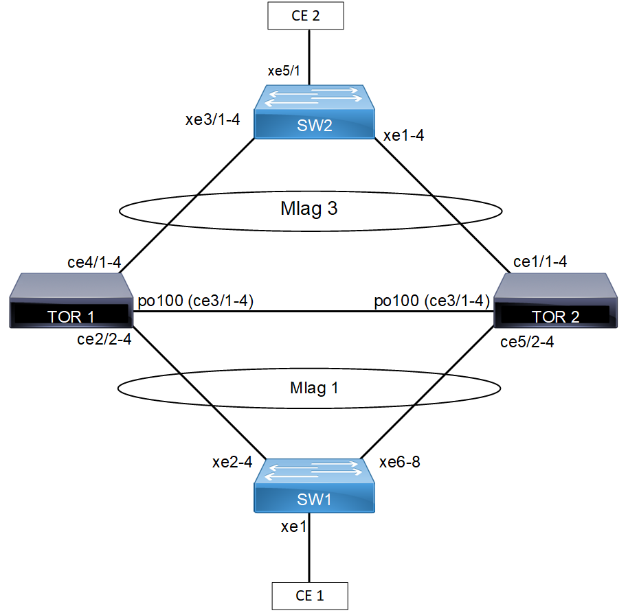 (config-mcec-domain)# intra-domain-link po100 | Specify the intra domain link for MLAG communication |