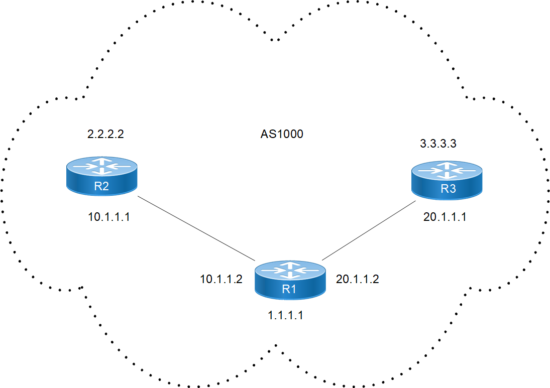 (config)#router bgp 100 | Define the routing process. The number 100 specifies the AS number of R1. |