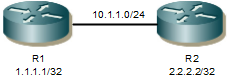 R2(config-if)#ip address 10.1.1.2/24 | Assign IP Address |