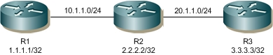 R2(config-if)#ip address 2.2.2.2/32 secondary | Configure the IP address on loopback interface. |