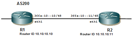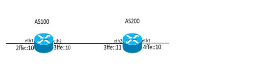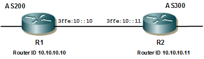 (config-router)#neighbor 3ffe:10::10 remote-as 200 | Define the BGP neighbor (R1), and establish a TCP session by specifying the IPv6 address (3ffe:10::10) and the AS number(200)of neighbor R1. |