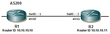(config-router)#neighbor fe80::1 remote-as 200 | Define the BGP neighbor (R1), and establish a TCP session by specifying the link-local address R1(fe80::1) and the AS number(200)of neighbor R1. |