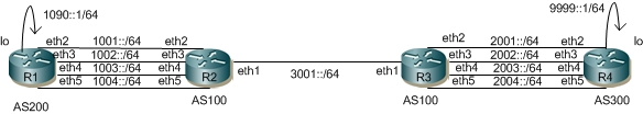 (config-router)#neighbor 1001::1 remote-as 200