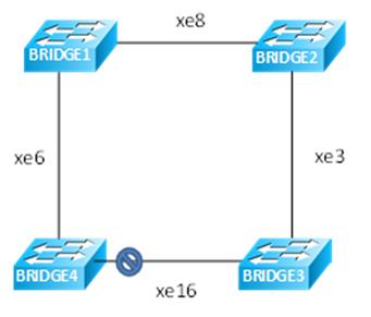 Figure 15-24 displays a sample Ring Protection topology on which protection switching is configured with four bridges. The Ring Protection Link (RPL) owner is the link between Bridge 3 and Bridge 4 (xe16), on which one side of the link is defined explicitly as RPL owner (Bridge 4) and RPL neighbor (Bridge 3). The rest of the bridges are explicitly configured RPL non owner to enable ERPS in the ring.