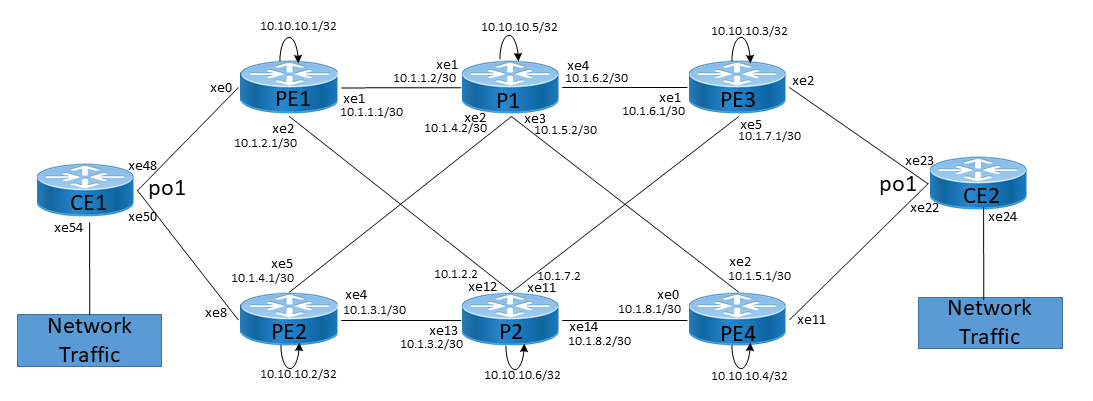 PE1(config-if)#exit | Exit interface mode xe1. |