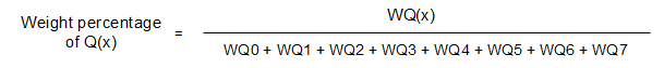 WQ0-WQ7 is the assigned weight values of the eight queues – for example, if the weight values q0 to q7 are assigned as 3, 10, 5, 7, 18, 4, 9 and 1, then the Weight value of q4 can be calculated using the formula:
