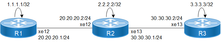 L> 3.3.3.3/32 2 2 - - LSP_DEFAULT 3 xe13 No 30.30.30.2