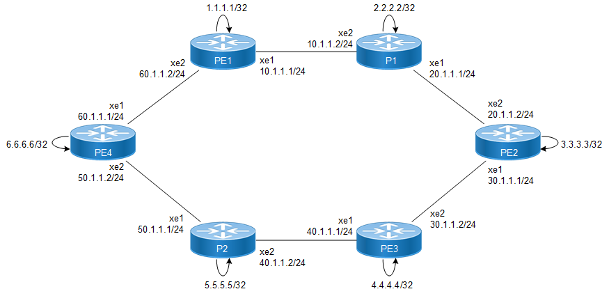 L1 5.5.5.5/32 20 50.1.1.1 xe2 0