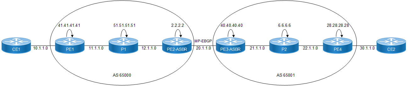 This is an option which enables BGP VPNv4 routes exchange between the two or more Provider Edge routers residing in different AS'es. There is no VPNv4 route exchange between the ASBRs and hence the ASBRs are completely transparent of the VPNs provisioned on the connecting AS'es. This option is more scalable than the previous two options because it removes the restriction of installing VPNv4 LFIB entries on the ASBRs hence reducing the resource requirements on them. ASBRs are only required to forward data based on the transport LSPs configured.