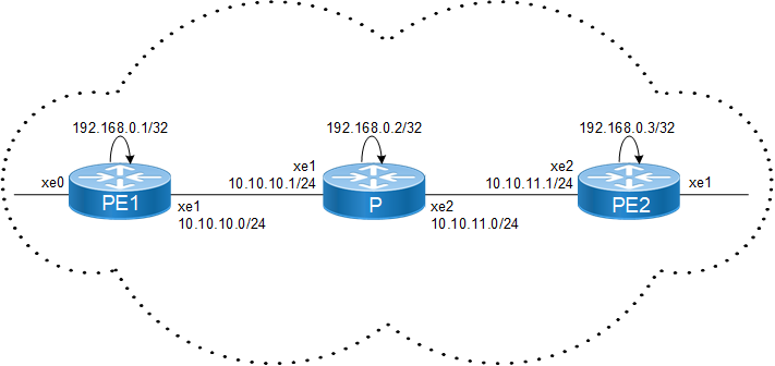 Enable label switching on interface xe1.