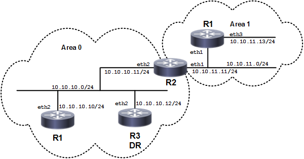 C 10.10.10.0/24 [1] is directly connected, eth2, Area 0.0.0.0