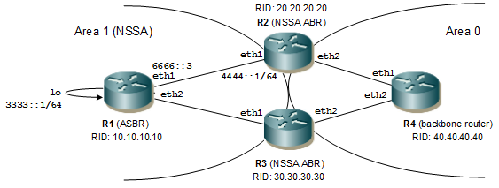 (config-router)#router-id 2.2.2.2 | Specify a Router ID for the OSPFv3 routing process. |