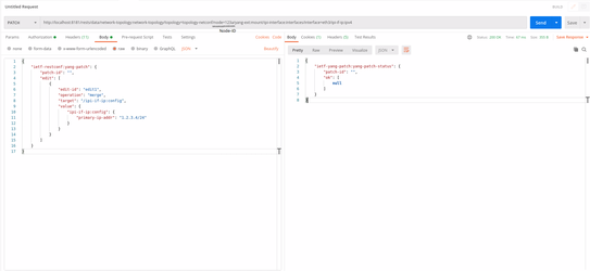 This example shows a patch operation to edit ip-address for interface using ODL: