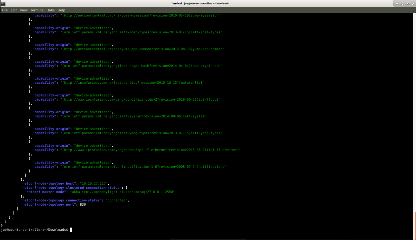 curl --user "admin":"admin" -H "Content-type: application/xml" -X GET http://localhost:8181/restconf/operational/network-topology:network-topology/topology/topology-netconf/ | jq .