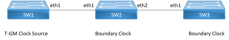 In this example, SW2 receives G.8275.1 clock from SW1 (T-GM), and after the translation, it sends G.8275.2 clock to SW3.