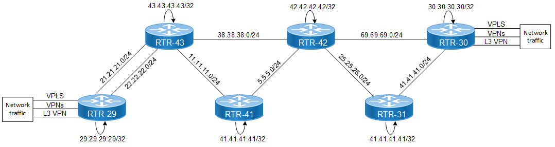 (config-if)#exit | Enable label switching on interface lo. |