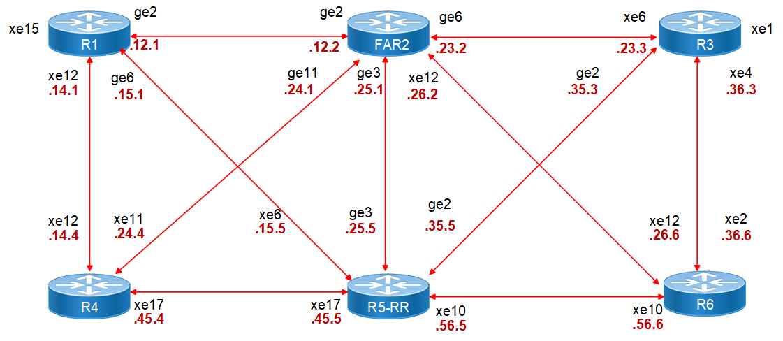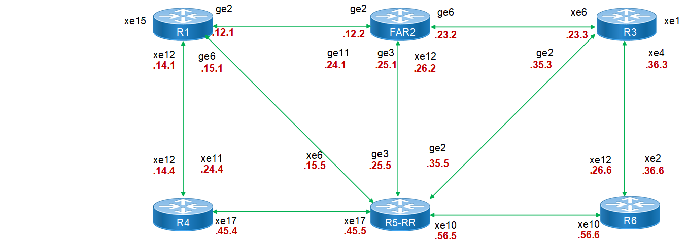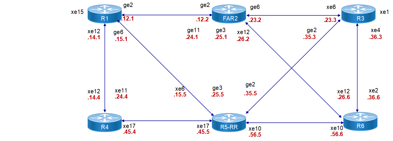 All links are included in this topology, as Flex-Algo 0 uses IGP metrics and has no constraints.