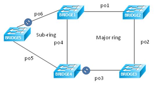Bridge5(g8032-config-switch)#ring RING1 | Associate ring RING1 to erp1 instance |