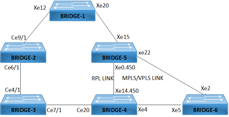 Bridge5(g8032-ring-config)#east-interface xe0 | Associate ce20 interface as east-interface |