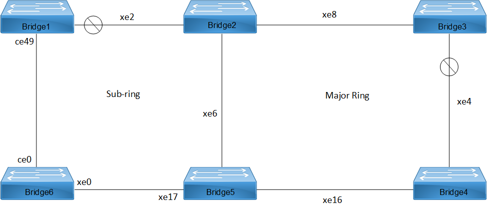 Bridge5(g8032-ring-config)#west-interface xe15 | Associate xe14 interface as west-interface |