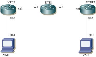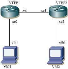 In this example, each VTEP (VTEP1 and VTEP2) is a multilayer switch where xe2 is an access port and xe1 is network port.