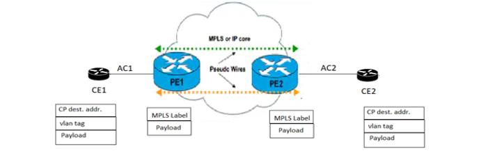 • Encapsulation: The PE router takes the incoming control frame (tagged or untagged) and encapsulates it directly with MPLS labels (the Transport label and the Service/VC label).