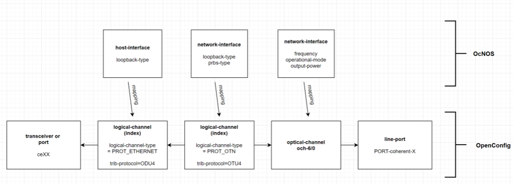 Host interface Loopback-type and Network interface prbs-type are translated to logical channels. The correlation is shown in the image below: