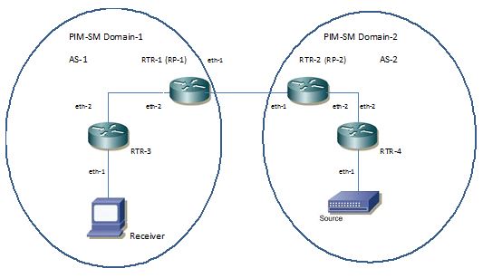 Multicast Source Discovery Protocol (MSDP) is used to exchange multicast source information between BGP-enabled PIM-SM domains. Using MSDP, routers in a PIM-SM domain can rely on their own RP to reach a source in a different PIM-SM domain.